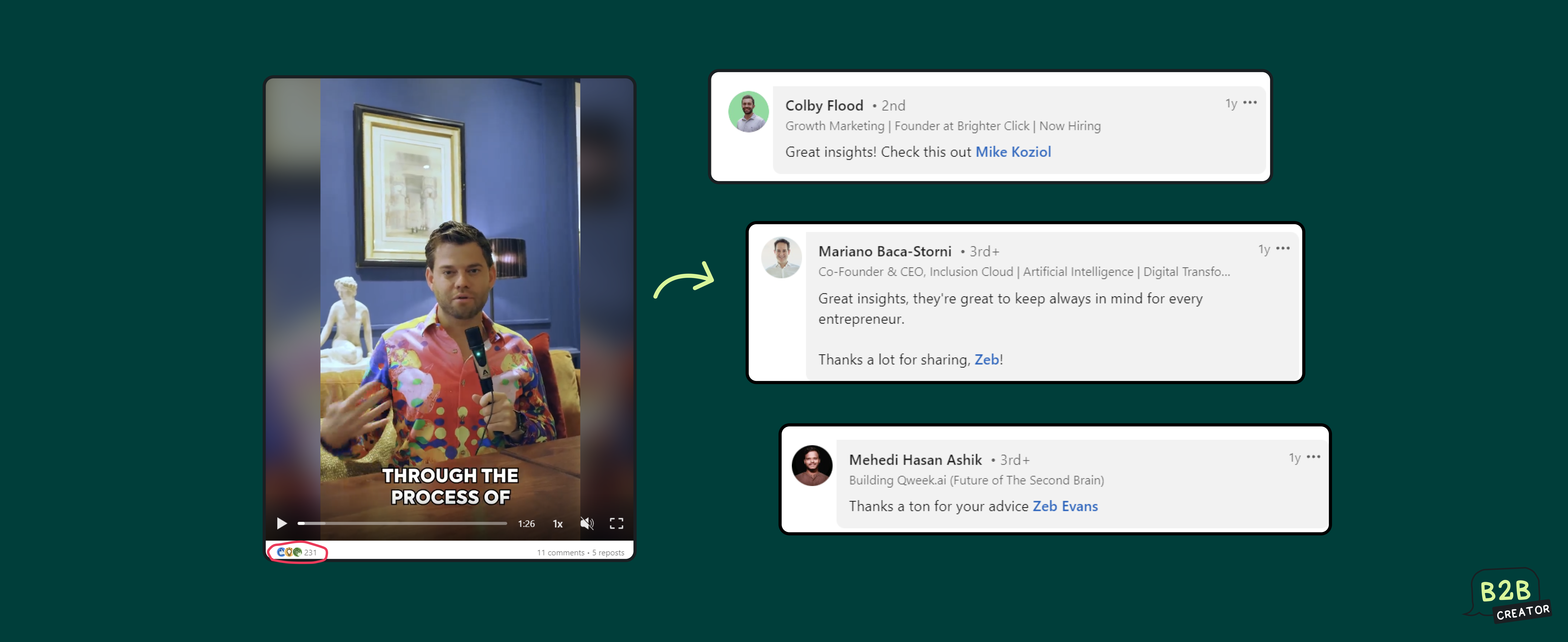 Proof that sharing educational content attracts other professionals and industry experts to engage leading to meaningful conversations, collaborations, and new networking opportunities.