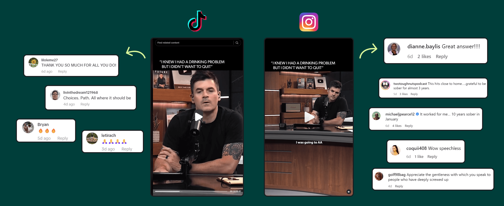 These long-form videos are broken into short-form clips, which he then posts on Instagram, TikTok, X, and Facebook. This format allows him to reach different audience segments with tailored messaging for each platform.