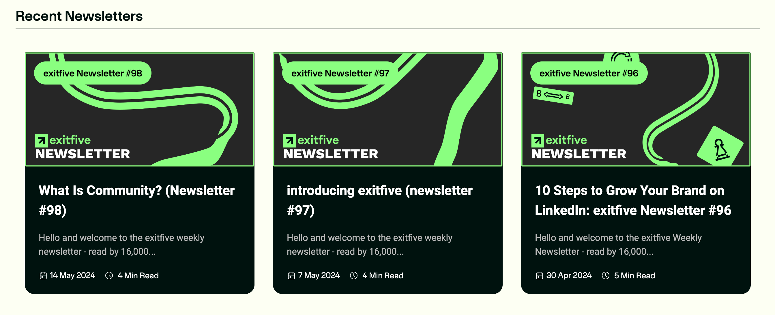 Or look at ExitFive (the biggest B2B marketing community) that is writing and sending the newsletter and after that they publish it as a blog post on their website.